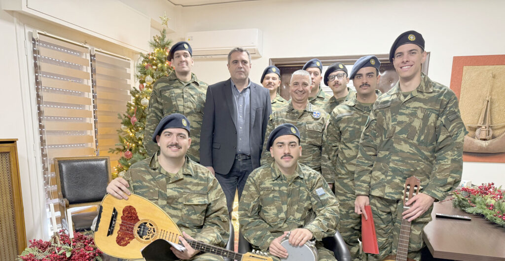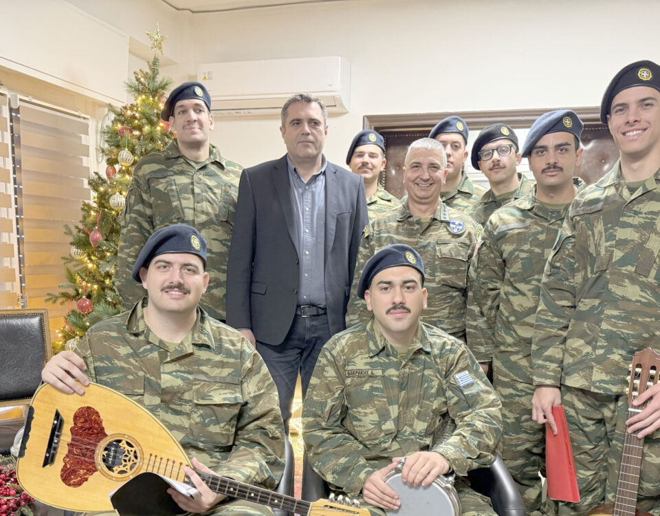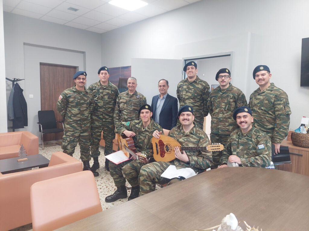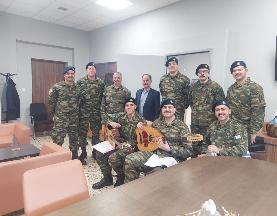Κάλαντα στον Δήμαρχο Μουζακίου από τους δοκίμους στρατονόμους του ΚΕΣΝ Ρούσσου