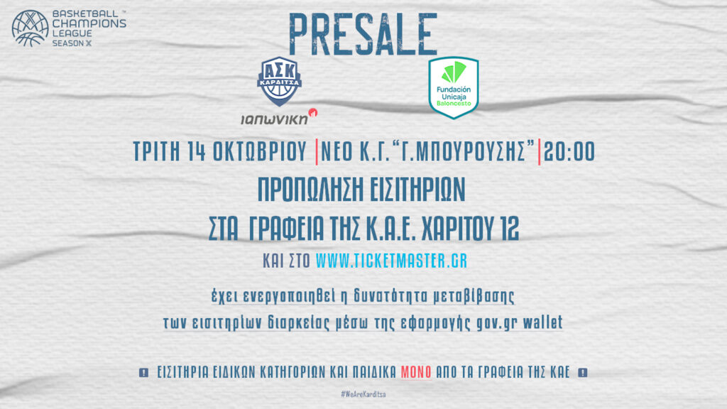 Σε κυκλοφορία τα εισιτήρια για το σπουδαίο πρώτο ευρωπαϊκό ματς με την τροπαιούχο του BCL Μάλαγα!