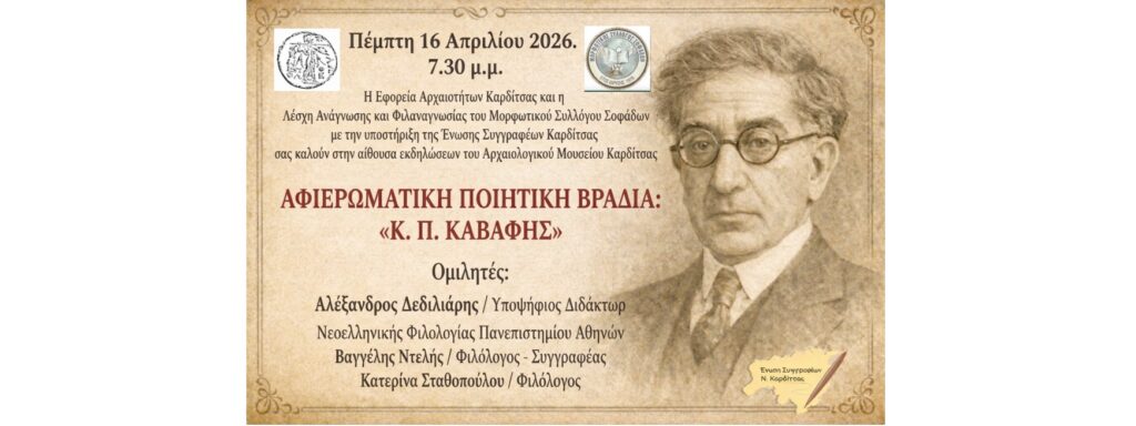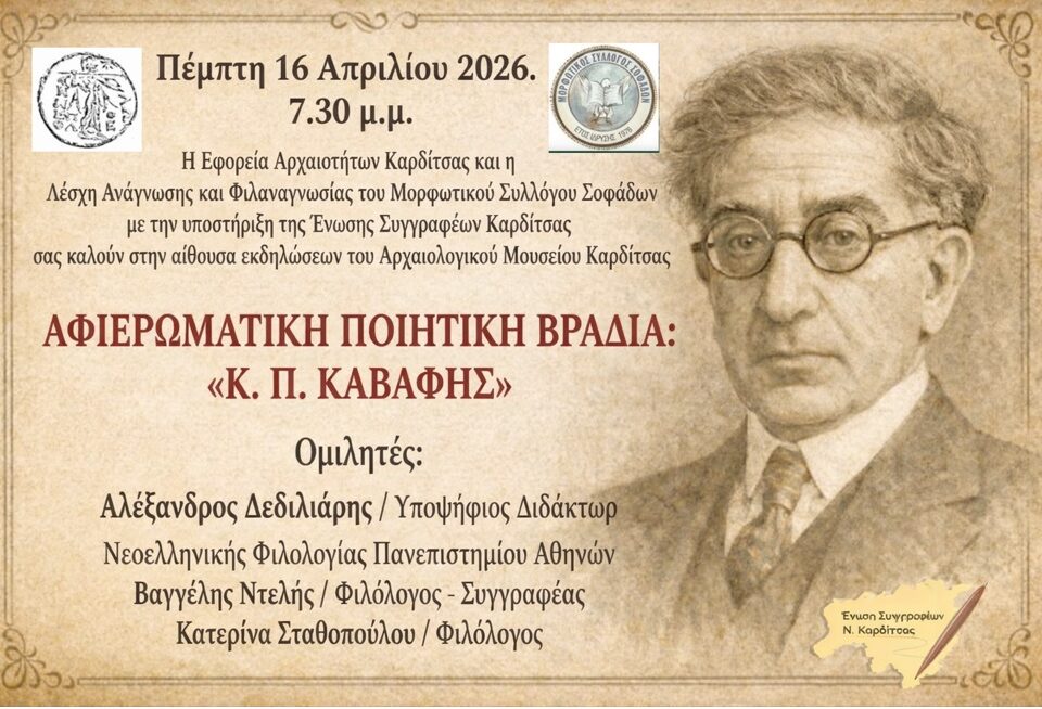 Αφιερωματική ποιητική βραδιά στον Κ. Π. Καβάφη στο Αρχαιολογικό Μουσείο Καρδίτσας