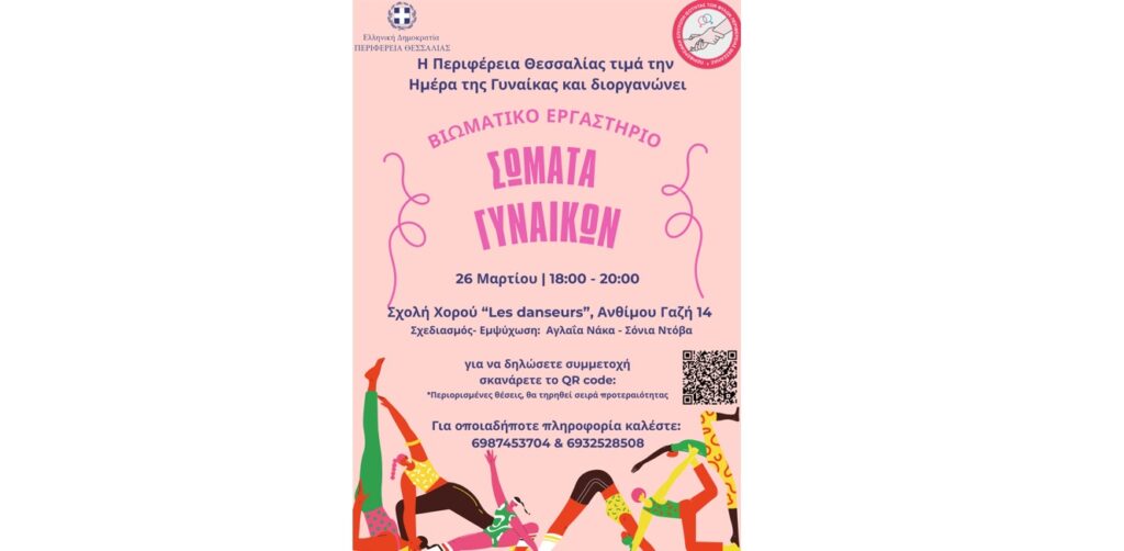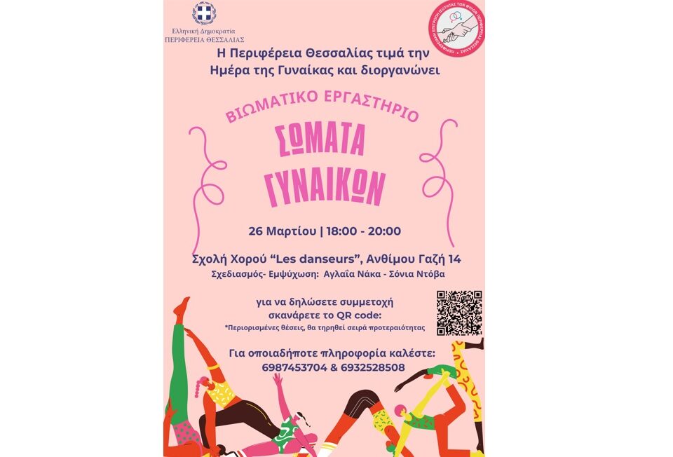 Περιφέρεια Θεσσαλίας: Βιωματικό εργαστήριο «Σώματα Γυναικών» για την ισότητα των φύλων