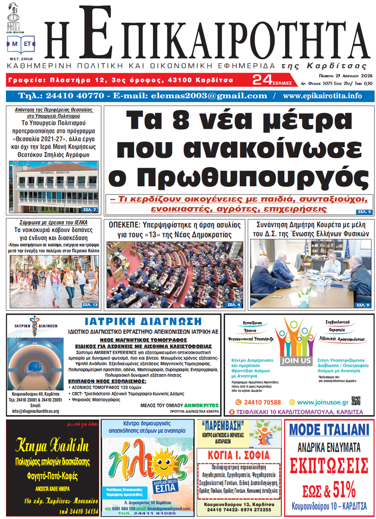 Επιστολή Δημ.Κουρέτα προς τον Υπουργό Παιδείας για την ένταξη των υποψηφίων των πανελλαδικών εξετάσεων και της Ελασσόνας στο καθεστώς ειδικής μοριοδότησης